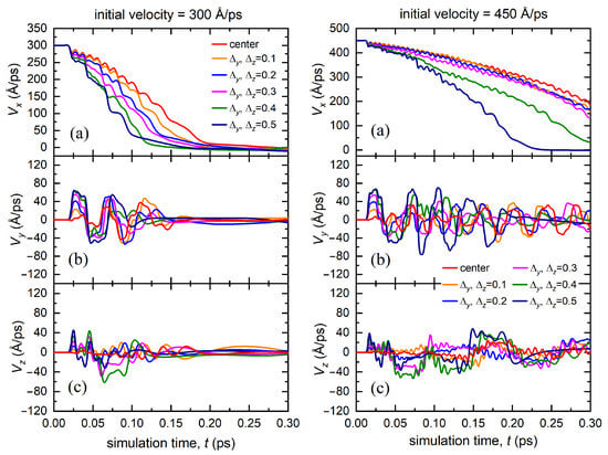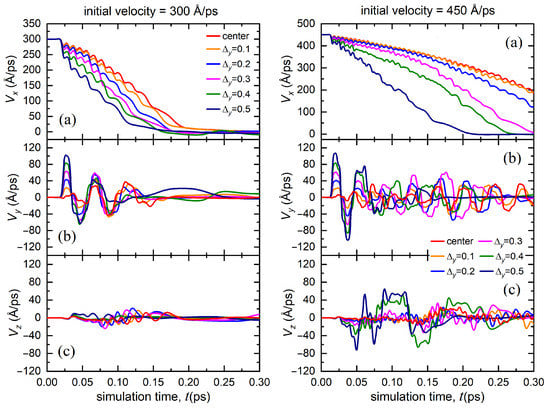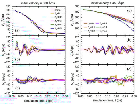 3.1. Influence of Initial Position of a Bombarding Atom with Respect to the Crystal