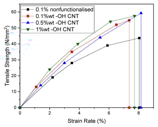 - Patel, V.; Joshi, U.; Joshi, A. Investigating the mechanical properties of nonfunctionalized MWCNT reinforced polymer nanocomposites. International Conference on Nanoelectronics, Nanophotonics, Nanomaterials, NanobioscienceNanotechnology, India. Mater. Today Proc. 2021, 43, 3511–3515. [Google Scholar] [CrossRef]
