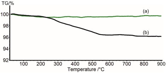 Thermogravimetric analysis was performed using a TG 209 F3 Tarsus instrument (NETZSCH, Selb, Germany). The open corundum crucible was used for measurements. The analyzed samples were heated at 5 °C/min from 25 to 900 °C under a nitrogen atmosphere (flow rate, 30 mL/min).