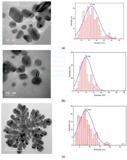Transmission electron microscopy is a very useful, frequently used, and important technique for the characterization of nanomaterials, used to obtain quantitative measures of particle and/or grain size, size distribution, and morphology [29]. Transmission electron microscopy images were recorded using a Tecnai G2 F20 TWIN Cryo-TEM (FEI Company, Hillsboro, OR, USA) system, at an accelerating voltage of 300 kV and a resolution of 1 Å.