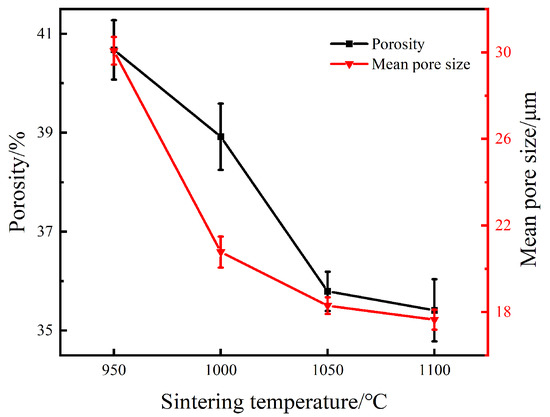 - With increasing sintering temperature, the atoms diffused sufficiently and the morphology of pores became smooth and regular. Moreover, the porosity and the mean pore diameter of the specimen was correspondingly reduced.