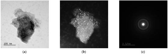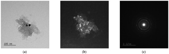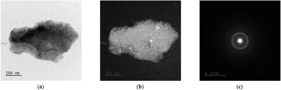 Microstructure analysis was carried out using a JEOL JEM-3010 high-resolution transmission electron microscope (TEM, JEOL Ltd., Tokyo, Japan) with 300 kV acceleration voltage, equipped with a Gatan 2k × 2k Orius™ 833 SC200D CCD camera (Gatan Inc., Pleasanton, CA, USA). The powder sample was suspended in isopropanol, and the resulting material, after dispersion in an ultrasonic bath, was deposited on a Cu grid with an amorphous carbon film standardized for TEM observations.