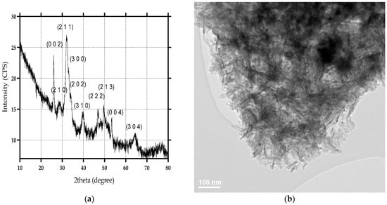 The synthesis of magnesium phosphate—Mg3(PO4)2, (MgP) involved the solubilization of MgCl2·6H2O and H3PO4 in 200 mL H2O, followed by the dropwise addition of the H3PO4 solution into MgCl2·6H2O solution. The pH was adjusted from 2 to 9 by adding NaOH under a cooling bath reaction for 24 h. The so-obtained gel was filtered, washed, dried at room temperature, and calcined at 850 °C for 6 h.