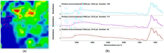 IR spectra and IR maps were obtained using FT-IR Nicolet 6700 equipment (Thermo Nicolet, Madison, WI, USA). For each sample, 32 scans were executed between 4000–1000 cm−1, at a 4 cm−1 resolution. The Omnic 8.2. software was used to process the recorded data.