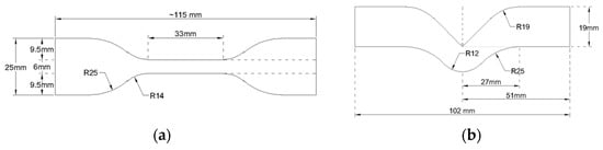 (a) ASTM D412 die C sample dimension for tensile properties measurements. (b) ASTM D624 die C sample dimension for tear strength measurement.