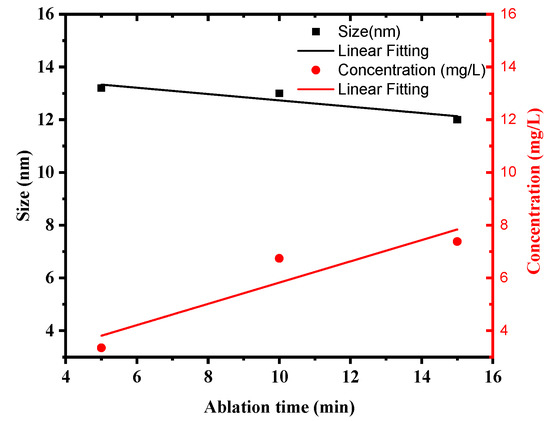 Dependence of AgNP concentration and size on ablation time.