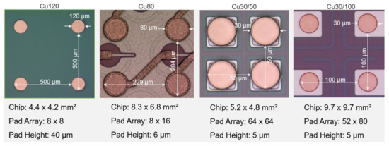 - Huebner, H.; Penka, S.; Barchmann, B.; Eigner, M.; Gruber, W.; Nobis, M.; Janka, S.; Kristen, G.; Schneegans, M. Microcontacts with Sub-30 µm Pitch for 3D Chip-on-Chip Integration. Microelectron. Eng. 2006, 83, 2155–2162. [Google Scholar] [CrossRef]