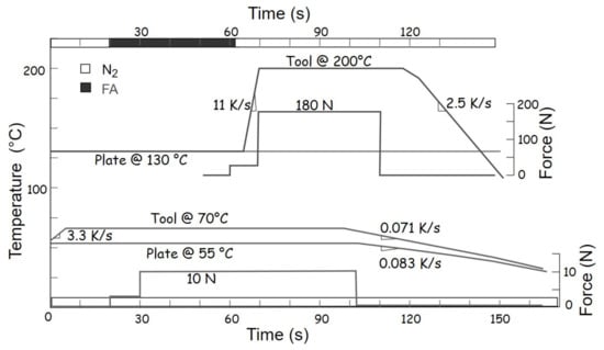 | µm | T (°C), t (s) | T (°C) | F (MPa) | T (°C), t (s) | |