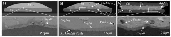 - Yu, C.; Yang, Y.; Wang, K.; Xu, J.; Chen, J.; Lu, H. Relation between Kirkendall Voids and Intermetallic Compound Layers in the SnAg/Cu Solder Joints. J. Mater. Sci. Mater. Electron. 2012, 23, 124–129. [Google Scholar] [CrossRef]