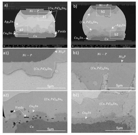 - Kim, Y.M.; Park, J.Y.; Kim, Y.H. Effect of Pd Thickness on the Interfacial Reaction and Shear Strength in Solder Joints Between Sn-3.0Ag-0.5Cu Solder and Electroless Nickel/Electroless Palladium/Immersion Gold (ENEPIG) Surface Finish. J. Electron. Mater. 2012, 41, 763–773. [Google Scholar] [CrossRef]
