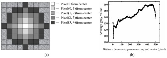 After determining the approximate ring that different pixels belong to, the average gray value of the pixels on each approximate ring was calculated, as shown in Formula (2).