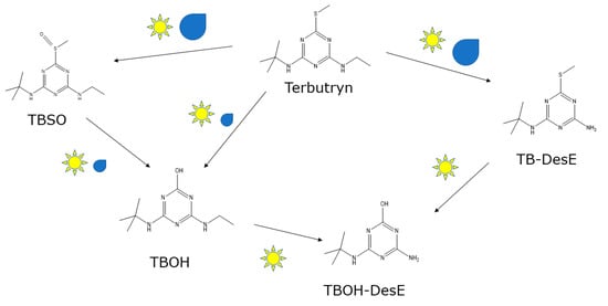 Observations on the influence of weather conditions on the occurrence of terbutryn transformation products in runoff are summarized in a simplified scheme (Figure 2).