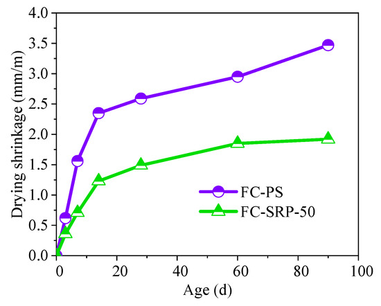 There was a reduction of 3.42 × 103 in dry shrinkage for the control group, as opposed to are duction of 1.75 × 103 for the experimental group on day 90. Therefore, SRP foam concrete is more resistant to shrinkage than PS foam concrete (Figure 9).