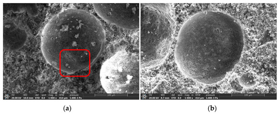 Micro-morphologies of the samples were determined using SEM for both the control group and experimental group (Figure 10). There are pores and cracks in the surface of the foam concrete surface in the control group, whereas the surface of the foam concrete in the experimental group is smooth and complete. SRP foam concrete hydrates more effectively than PS foam concrete, as indicated by the experimental results.