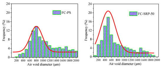 Scanners (Beijing Flukes Technology Co., Ltd., Beijing, China) were used to explore the cross sections of the control and experimental groups after 28-day curing. (Figure 11) They were processed using Image Pro Plus software to determine the frequency distribution of pore size and fit the curve based on the sample. Earlier studies [44] have shown that the pore-size distribution of foam concrete is mainly logarithmic in nature, which can explain the results of these studies well [44]. A probability function, was used to fit the distribution of pore sizes to the data.