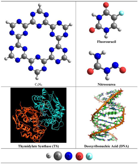 - Ahsan, F.; Yar, M.; Gulzar, A.; Ayub, K. Therapeutic Potential of C2N as Targeted Drug Delivery System for Fluorouracil and Nitrosourea to Treat Cancer: A Theoretical Study. J. Nanostructure Chem. 2022. [Google Scholar] [CrossRef]
