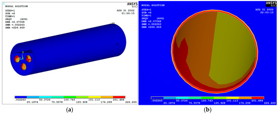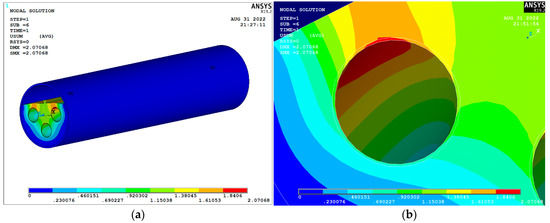 Deformation cloud chart under operating pressure: (a) Natural gas transmission tunnel; (b) Gas pipeline.