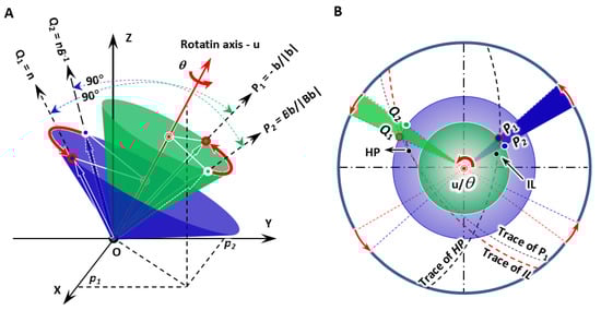 As shown in Figure 1A, given that both non-inclined vector P1 and invariant normal Q1 are defined, it is easy to deduce a rotation matrix R(u/θ) (Here, u is the unit rotation axis and θ is the rotation angle.) obtained by resolving Euler’s equation dealing with rigid-body rotation [16].