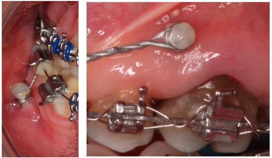 Orthodontic treatment requires a balance in the orthodontic biomechanics. Anchorage control plays the main role of the orthodontic forces. This anchorage control is fundamental to successful orthodontic treatment. Several techniques that reinforce anchorage have been used in orthodontic therapies for multi-bracket or for aesthetic aligners. For both, additional anchorage supports are often needed to support the anchoring teeth, whereas intraoral aids to reinforce the anchorage are well-accepted due to the high loads, and extraoral systems that lack comfort, such as headgear, are often abandoned by patients. Titanium dental implants, because of their excellent capacity in osseointegration, provide an important rigid stability for bone–implant anchorage and serve as the best intraoral anchorage devices [1,2,3]. Since the last decade of the last century, unlike the osseointegrated dental implants, removable titanium mini-implants have been extensively used to provide excellent bone anchorage that resists high-orthodontic forces. These mini-implants are easy to insert and remove. Mini-implants, which were originally simply surgical miniscrews, have been developed and optimized to apply to many orthodontic strategies. Most importantly, given their small size, they can be placed in the alveolar bone of adjacent teeth without damaging roots [1,2,3,4]. The applications of mini-implants in orthodontics are highly versatile as can be seen in Figure 1.