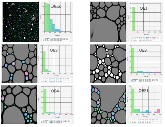 Air-void photographs of the hardened specimen samples mixed with various defoamers.