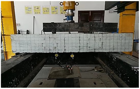 Group (3) addressed the third parameter (case of loading) and its effect on the capacity of beams with a constant bacteria concentration; the type of bacteria was 3% of Bacillus subtilis. Three cases of loading were used: a one-point load, a two-point load, and distributed loads on four points.