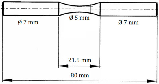 Afterwards, the swaged rods were naturally aged at room temperature for 350 days. The grain structure of the extruded and swaged cylindrical samples was investigated by light microscopy (Zeiss Axio Observer 7 microscope, Carl Zeiss QEC GmbH, Munich, Germany) performed with an Olympus microscope (Olympus, Tokyo, Japan). In addition, electron backscatter diffraction (EBSD) analysis was used to analyse grain structure, texture, and local misorientation. The Zeiss Auriga Compact scanning electron microscope (Carl Zeiss microscopy GmbH. Oberkochen, Germany) equipped with the EDAX EBSD camera (EDAX, Pleasanton, CA, USA) and OIM 7.3 software was used for this analysis. Texture analysis was performed using the series expansion of generalised spherical harmonics under the axial symmetry condition. The kernel average misorientation (KAM) was used in the EBSD analysis as a measure of local grain misorientation. Fracture surfaces after cyclic loading were analysed with the use of Vega LMU II SEM (TESCAN ORSAY HOLDING, Brno, Czech Republic). Residual elastic strains were measured in an argon atmosphere using the Netzsch 410 dilatometer (Netzsch-Gerätebau GmbH, Selb, Germany), over a temperature range from room temperature to 400 °C. Aged RSWed samples were used for deformation and fatigue experiments. Tensile and compression tests were performed at room temperature on an Instron 5882 testing machine (Instron ltd, High Wycombe, UK), at an initial strain rate of the order of 10−3 s−1. The samples for tensile tests had a dog bone shape with a gauge length of 25 mm and a diameter of 6 mm. The samples for compression tests had a cylinder shape with a diameter of 6 mm and a height of 10 mm. Characteristic stresses, such as tensile/compression yield stress (TYS/CYS) and maximum tensile strength (UTS) and peak compression strength (PCS), were estimated as a true stress at the strain = 0.002 and the maximum true tensile/compressive stress. The standard deviation of the measured stresses was ±5%. Fatigue tests were performed on the Instron M22-1528 ElectroPuls E100003 fatigue machine (Instron, Norwood, MA, USA) at room temperature at a frequency of 35 Hz. Symmetrical cyclic push–pull loading (parameter of cycle asymmetry parameter (R = −1) at ambient temperature was used with a predetermined stress amplitude. The number of cycles was fixed at 107 cycles. The stress amplitude was reduced stepwise from 150 MPa to 120 MPa. For one amplitude, two samples were tested. The geometry of the samples for the fatigue tests is shown in Figure 1. The surface of the samples was polished before cycling. Microhardness was measured with the Vickers indenter at room temperature in a Qness 10a apparatus (ATM Qness GmbH, Golling, Austria), with a load of 0.1 kg and a dwell time of 10 s. The microhardness was estimated from the section perpendicular to the extrusion direction.