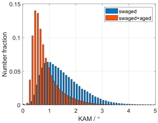 KAM distributions of the swaged and swaged + aged samples.