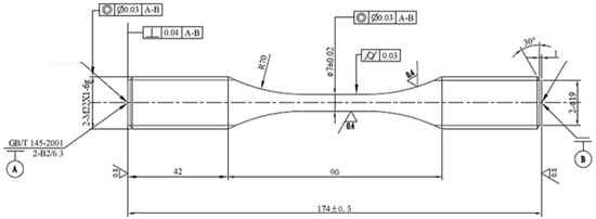 The aluminium alloy 7050 specimen used in the vibration fatigue test is shown in Figure 1. The geometry dimensions, chemical composition and mechanical properties of the specimen are listed in Table 1 and Table 2. Based on the testing reports of the manufacturer, the chemical composition of the alloy is as follows: Cu, 2.36%; Zr, 0.1%; Si, 0.12%; Fe, 0.15%; Cr, 0.04%; Mn, 0.1%; Zn, 5.7%; Mg, 2.3%; Ti, 0.06%; and the balance is Al.