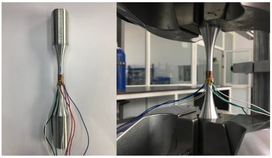 The fatigue behaviour of the materials, characterized by the S–N curve (stress versus number of cycles), yields the number of cycles that occurred before the failure of the specimen depending on the amplitude of the stress applied. During vibration-induced failures, the frequency will shift as the crack grows through the material. The change in frequency leads to a change in the stress state. Experimental work is one of the most effective methods to study the vibration fatigue behaviour of materials. Moreover, it is the critical technique to ensure the vibration fatigue experimental end criteria for the vibration fatigue test. The vibration fatigue experiment and the traditional fatigue test were conducted. Firstly, we made the resonant frequency of the experimental system clear. Then, the specimen was swept with the frequency test before we conducted the vibration fatigue experiment. The vibration fatigue experiment was carried out at room temperature without heating throughout the whole process of testing, and the vibration fatigue experiment platform is shown in Figure 2.
