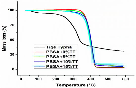 Thermogravimetry (TGA) of virgin PBS and its biocomposites.