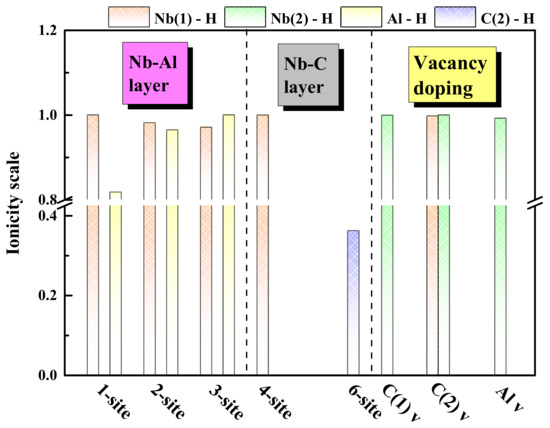 Ionicity scale Pi of Nb, Al, C–H bonds in Nb4AlC3 MAX phases.