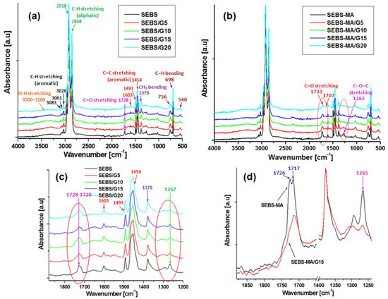 FTIR spectra of the SEBS and SEBS-MA composites are shown in