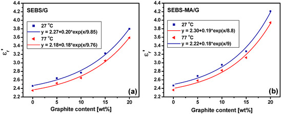 r’ with G concentration follows an exponential law for both SEBS/G and SEBS-MA/G composites, as can be seen in the plots of ε