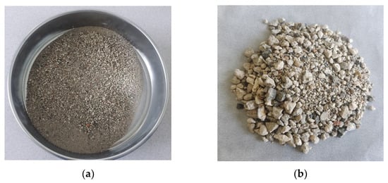 Recycled fine aggregate. (a) Original recycled fine aggregate; (b) Recycled fine aggregate after screening.