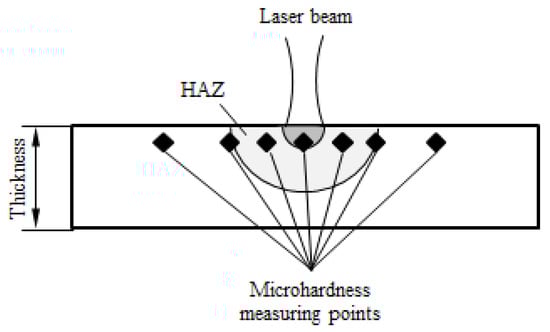 Schematic view of the cross-section and positions of the microhardness measuring points.