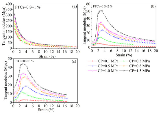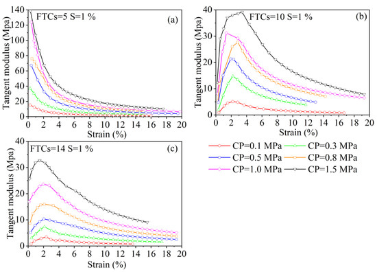 4.2. Effect of FTCs and Salt Erosion on the Tangent Modulus of Solidified Soils
