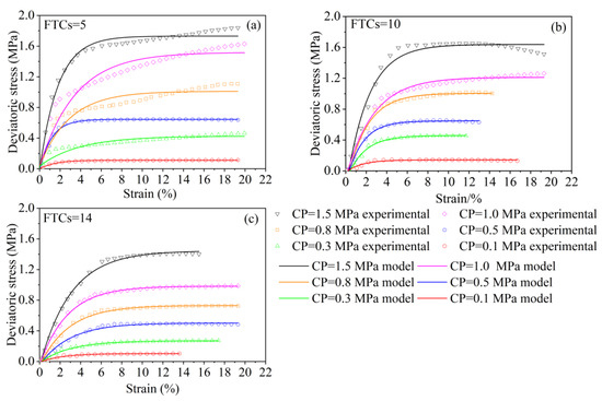 - Considering the damage threshold of FTCs on solidified saline soil, Weibull distribution is used to describe its damage evolution regulation. The simulation results of modelling show that the damage constitutive model is more suitable than the traditional constitutive model for solidified saline soil under the effect of FTCs.