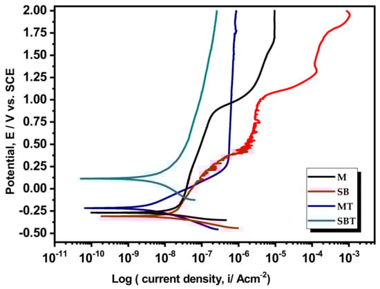 - Acquired in vitro electrochemical corrosion result confirmed the favorable role of thermal treatment and sandblasting (SBT) of Ti64 alloy by exhibiting higher impedance (4820.89 kΩ cm2) with lower capacitance (0.075 Ω−1 cm−2 sn) values in EIS and reduced icorr (0.0060 µA cm2) with lower ip (0.1102 µA cm2) values in PDP results in comparison with the M and SB specimens.