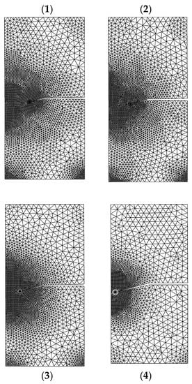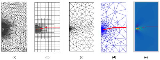 - Phongthanapanich, S.; Dechaumphai, P. Adaptive Delaunay triangulation with object-oriented programming for crack propagation analysis. Finite Elem. Anal. Des. 2004, 40, 1753–1771. [Google Scholar] [CrossRef]