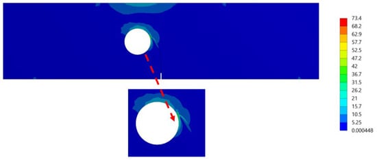 The distribution of a von Mises stress (MPa) at the last step of the crack’s propagation.