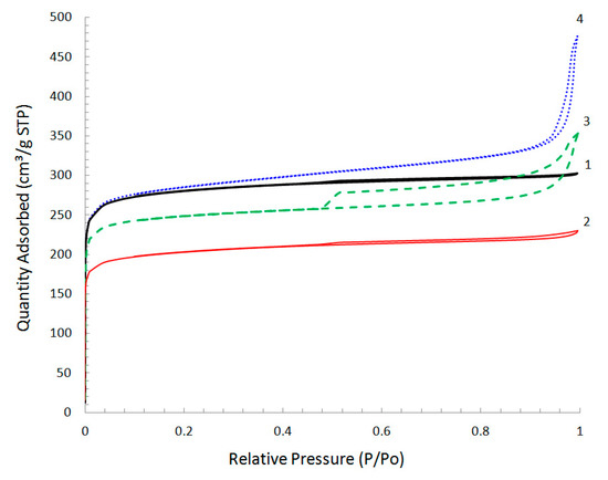 - Thommes, M.; Kaneko, K.; Neimark, A.V.; Olivier, J.P.; Rodrigues-Reinoso, F.; Rouquerol, J.; Sing, K.S.W. Physisorption of gases, with special reference to the evaluation of surface area and pore size distribution (IUPAC Technical Report). Pure Appl. Chem. 2015, 87, 1051–1069. [Google Scholar] [CrossRef]