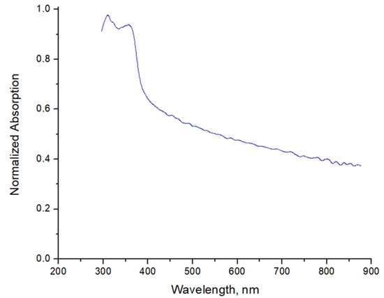 The UV-Vis absorption spectra of ZnO-NPs were investigated at room temperature in the range of 200–900 nm, as shown in Figure 4. The absorption peaks for ZnO-NPs were at λ = 320 nm, 377 nm, and very small at λ = 340 nm. A higher degree of redshift could be due to the bigger crystallite size. In general, the UV-Vis absorption spectra of the ZnO-NPs solution are typical ones and fit well with the results of the published works of other authors [28,29].