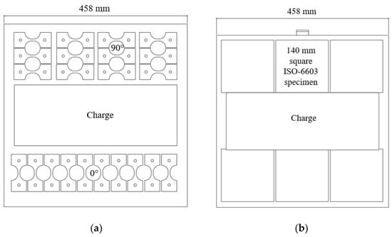 (a) Intermediate strain rate specimen layout, (b) ISO6603 specimen layout.