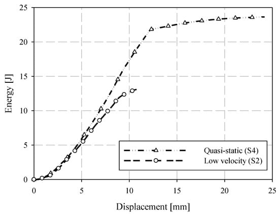 Comparison of quasi-static and low-velocity puncture energy-deflection responses.