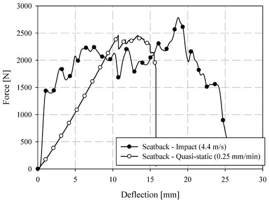 3.6. Quasi-Static and Low-Velocity Impact Loading of an LFT-D Automotive Seatback