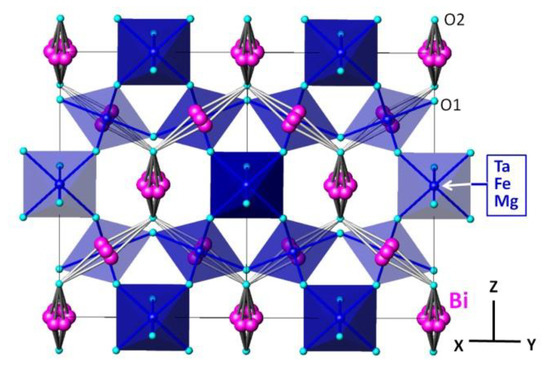 It should be noted that the geometric parameters of the Bi1.5Mg0.375Fe0.375Ta1.5O7−Δ pyrochlore structure are slightly larger than those for Bi1.5Fe0.75Ta1.5O7+Δ [17], which is due to the difference between the radii of Mg(II) and Ta(V), Fe(III). For example, the average Ta-O bond length for Bi1.5Fe0.75Ta1.5O7+Δ is ~1.987 Å, while the Bi-O distances in the polyhedron vary from 2.30 up to 2.99 Å