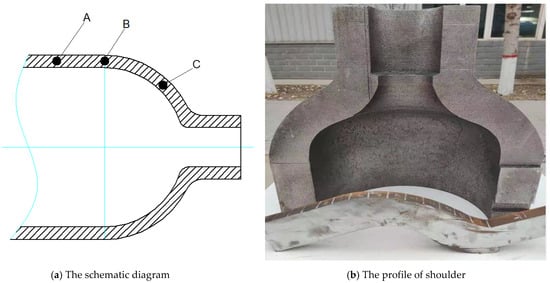 Disc sampling (A, B, and C) is shown in Figure 3 after spinning the cylinder. The sampling direction is circular. The sampling positions are the cylinder body, shoulder and the joint of the cylinder body. The sampling depth is 1/2 wall thickness from the surface.