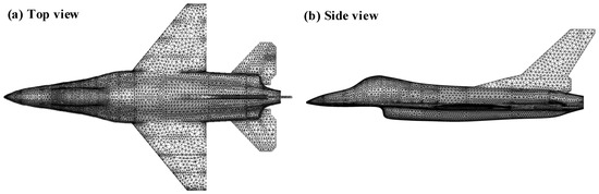 (a) Top view and (b) side view of grid division for the aircraft.