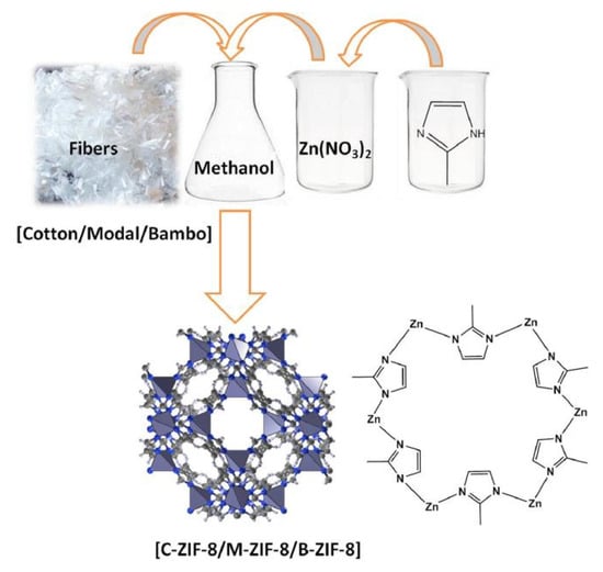 Synthesize scheme of ZIF-8 using different cellulosic fiber templates [63].