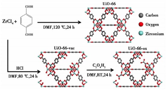 Synthesis of UIO-66, UiO-66-vac, and UiO-66-ox [101].